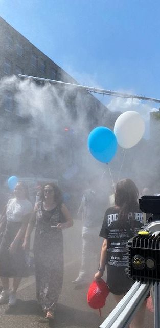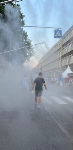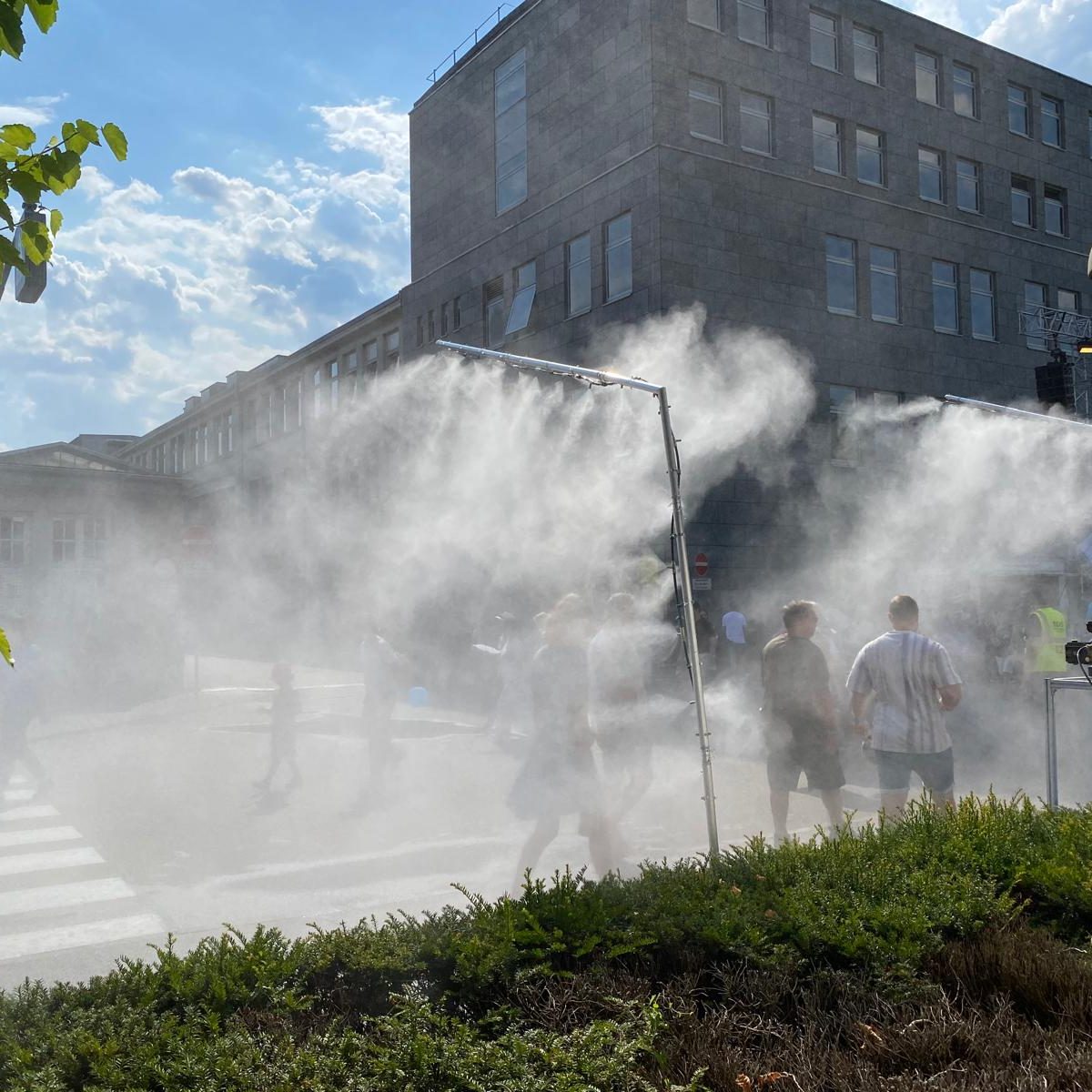 Dabei kann es in der Nebelwolke bis zu 10°C kühler werden als in der Umgebung. Mit speziellen Gebläsen sogar bis zu 18°C.